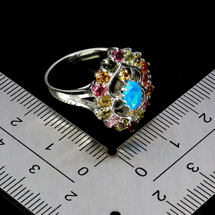 Б5908Natural Blue Opal, Citrine, Tanzanite 185.0 Х 162.0 Х 11.0 ММ.Вага 11.9 гр.Срібло 925 проби покрите білим золотом.Розмір каміння - 2.0 TO 8.0 X 6.0 MM.Чистота - If.Обробка - Clarity Enhanced.Походження - Ethiopia...