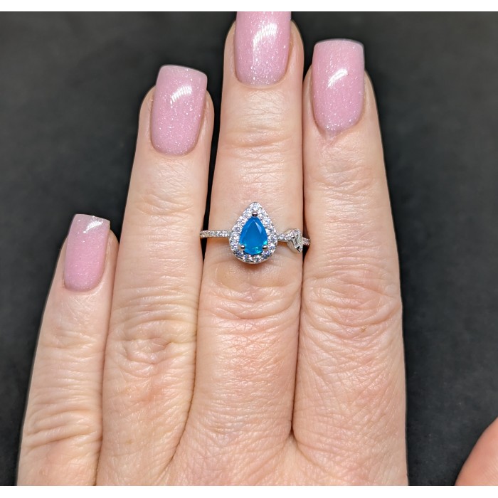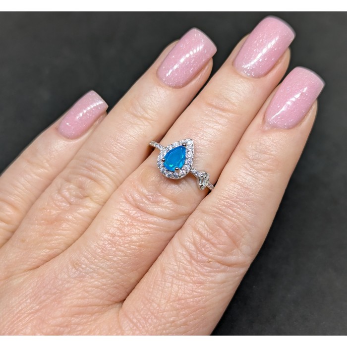 К6028Natural Blue Opal Cz 16.0 X 12.0 MM.Розмір 17.35.Вага 2.67.Срібло 925 проби покрите білим золотом.Розмір каміння - 7.0 X 5.0 MM., CZ 1.0 TO 2.0 MM.Чистота - IfОбробка - Clarity Enhanced.Походження - Ethiopia...