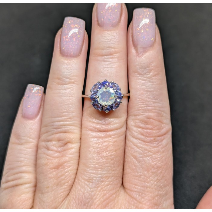 К5726Natural Opal, Rhodolite Garnet & Zircon 14 x 23 mm.Розмір 16.3.Вага 3,85 гр.Срібло 925 проби покрите білим золотом.Розмір каміння - 5 x 7 - 1.1 mm.Чистота - OPAQUE.Обробка - UNHEATED.Походження - ETHIOPIA...