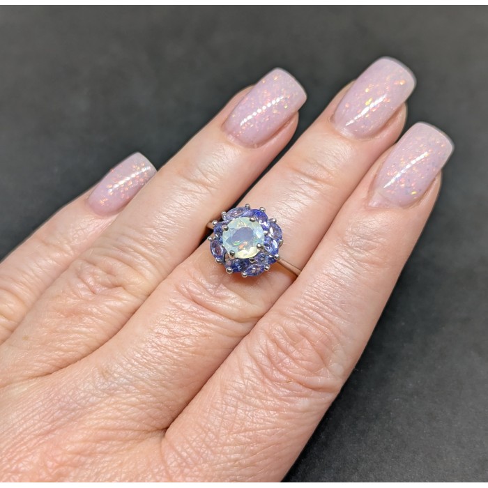 К4859Natural Aquamarine, Tanzanite, Tourmaline 15.0 X 15.0 MM.Розмір 18.2.Вага 3.34 гр.Срібло 925 проби покрите білим золотом.Розмір каміння - 2.5 TO 4.0 MM.Чистота - If To Vvs.Обробка - Unheated.Походження - Brazil...