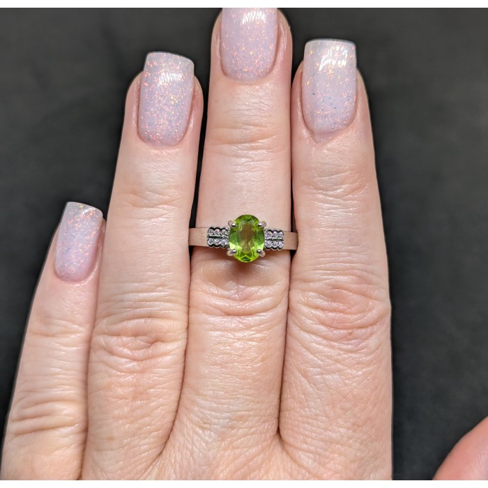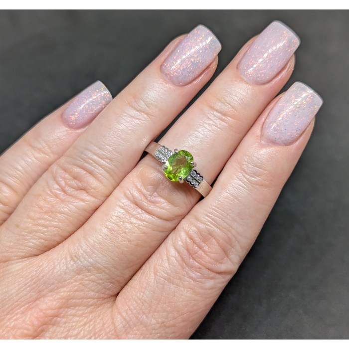 С5832Natural Peridot, Mother Of Pearl, Cz 30.0 X 8.0 MM.Вага 5.3 гр.Срібло 925 проби покрите білим золотом.Розмір каміння - 8.0 X 6.0 MM., MOP 10.0 MM., CZ 1.0 MM.Чистота - If To Vvs.Обробка - Unheated.Походження - Pakistan...