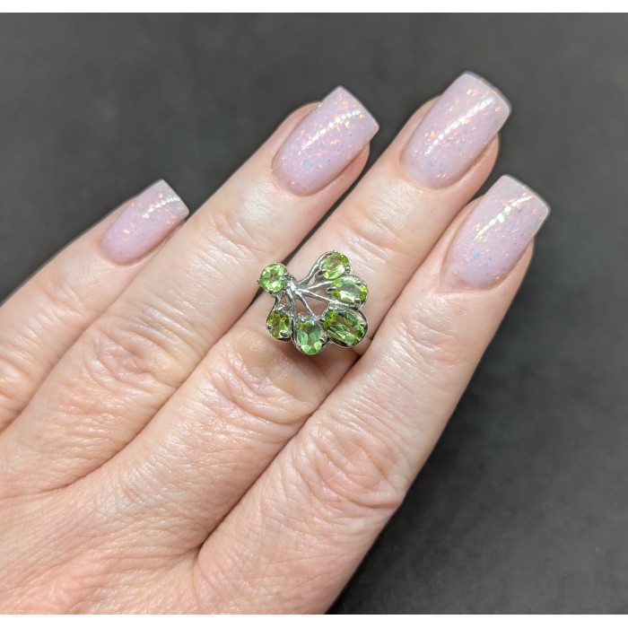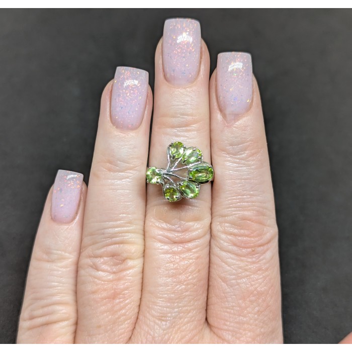 К5738Natural Peridot Cz 14.0 X 9.0 MM.Розмір 18.2.Вага 2.85 гр.Срібло 925 проби покрите білим золотом.Розмір каміння - 1.0 TO 9.0 X 7.0 MM. Чистота - If To Vvs.Обробка - Unheated.Походження - Brazil...