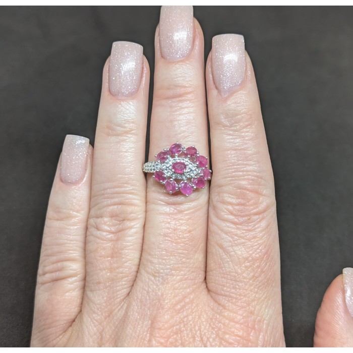 К4932Natural Amethyst 35.0 X 19.0 MM.Розмір 17.75.Вага 7.11 гр.Срібло 925 проби покрите білим золотом.Розмір каміння - 3.0 TO 6.0 X 4.0 MM.Чистота - If To Vvs.Обробка - Unheated.Походження - Uruguay...