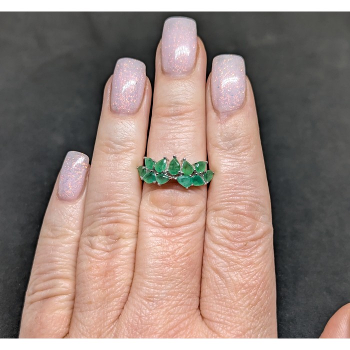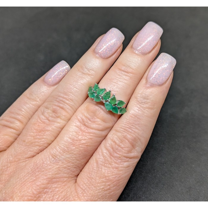К5570Natural Emerald 21.0 X 14.0 MM.Розмір 17.35.Вага 2.52 гр.Срібло 925 проби покрите білим золотом.Розмір каміння - 4.0 X 2.0 TO 4.0 X 3.0 MM. Чистота - Transparent.Обробка - Unheated.Походження - Brazil...