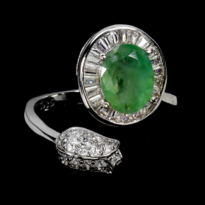 К5748Natural Emerald, Rhodolite Garnet 21.0 X 14.0 MM.Розмір 17.6.Вага 6.49 гр.Срібло 925 проби покрите білим золотом.Розмір каміння - 1.0 TO 6.0 X 4.0 MM.Чистота - Transparent.Обробка - Unheated.Походження - Brazil...