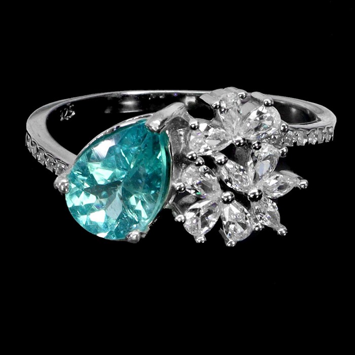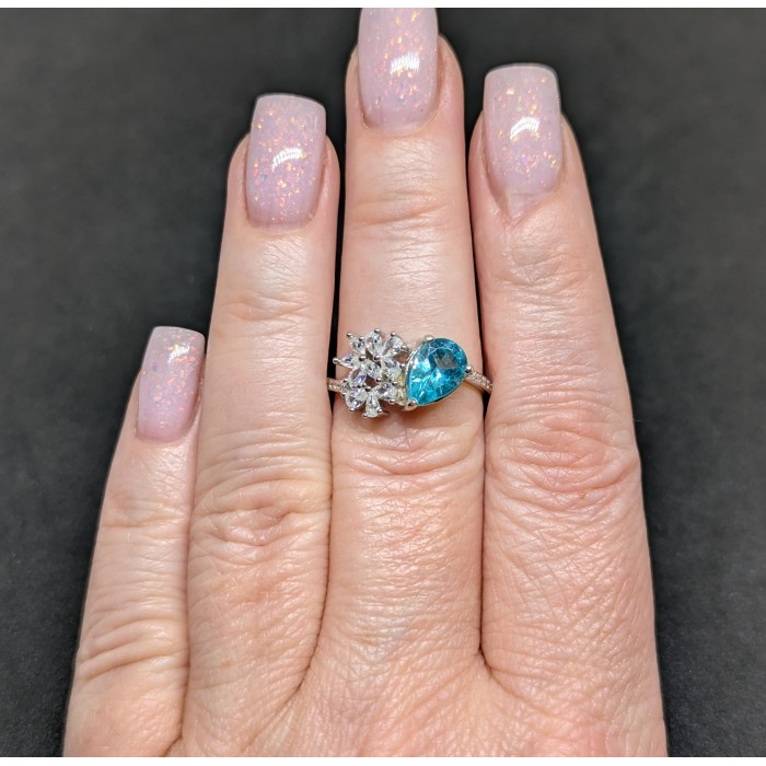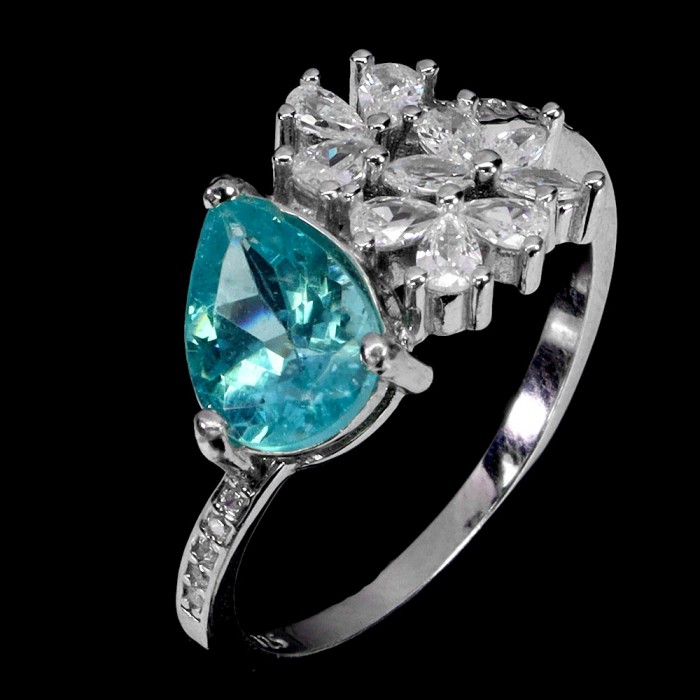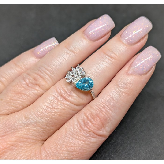 К5442Natural Aquamarine 17.0 X 14.0 MM.Розмір 17.7.Вага 2.39 гр.Срібло 925 проби покрите білим золотом.Розмір каміння - 5.0 X 4.0 MM.Чистота - If To Vvs.Обробка - Unheated.Походження - Brazil...