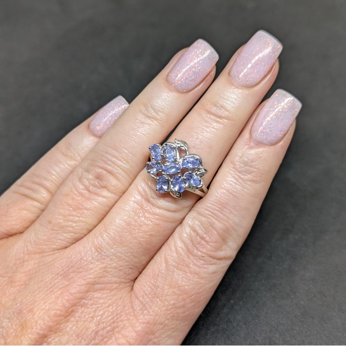 Срібло 925 проби покрите білим золотом.