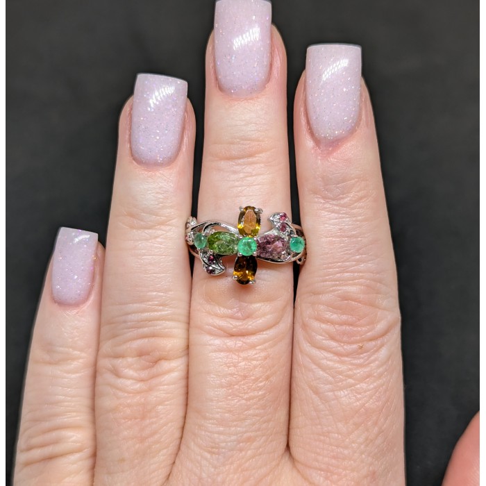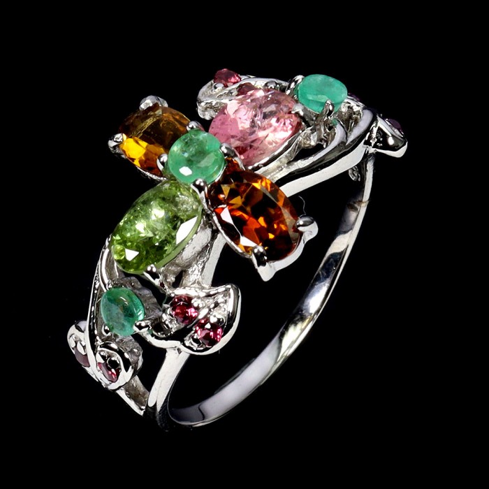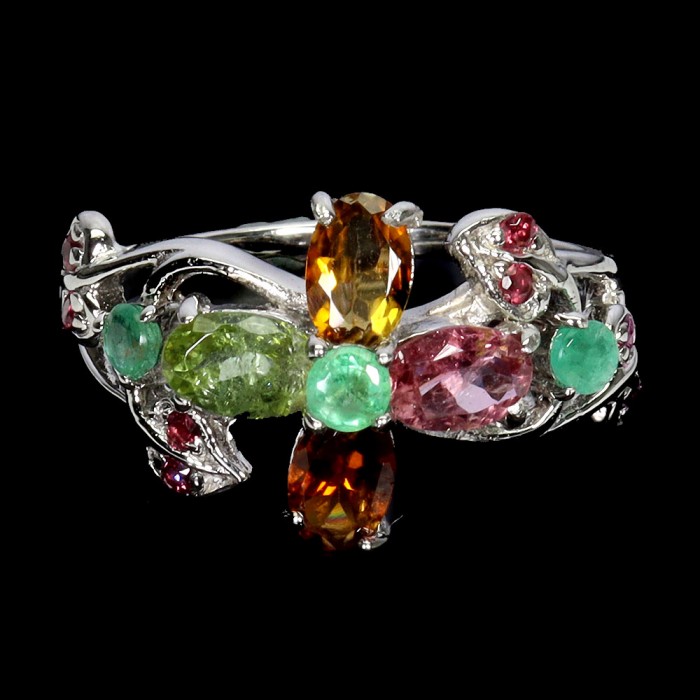 Natural Tourmaline, Emerald, Rhodolite Garnet 21.0 X 13.0 MM.