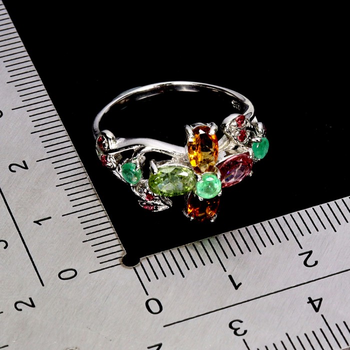 К3344Natural Amethyst Rhodolite Garnet 34.0 X 21.0 MM.Розмір 18.2.Вага 7.57 гр.Срібло 925 проби покрите білим золотом.Розмір каміння - 1.5 TO 6.0 X 4.0 MM.Чистота - IF TO VVS.Обробка - UNHEATED.Походження - URUGUAY...