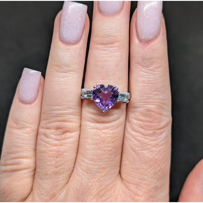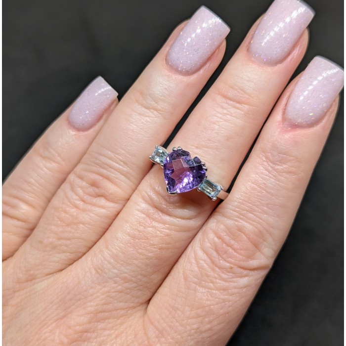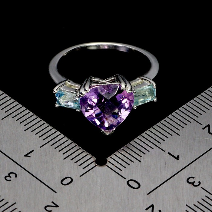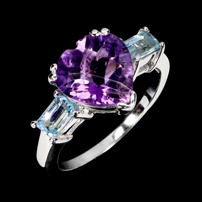 К5399Natural Sky Blue Topaz, Amethyst 20.0 X 18.0 MM.Розмір 18.2.Вага 3.1 гр.Срібло 925 проби покрите білим золотом.Розмір каміння - 5.0 X 3.0 TO 7.0 X 5.0 MM.Чистота - If To Vvs.Обробка - Irradiated.Походження - Africa...