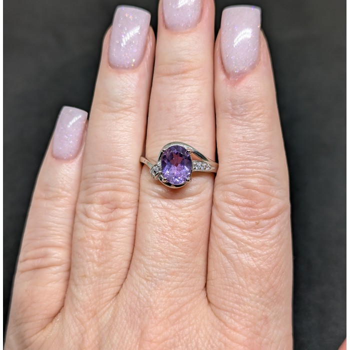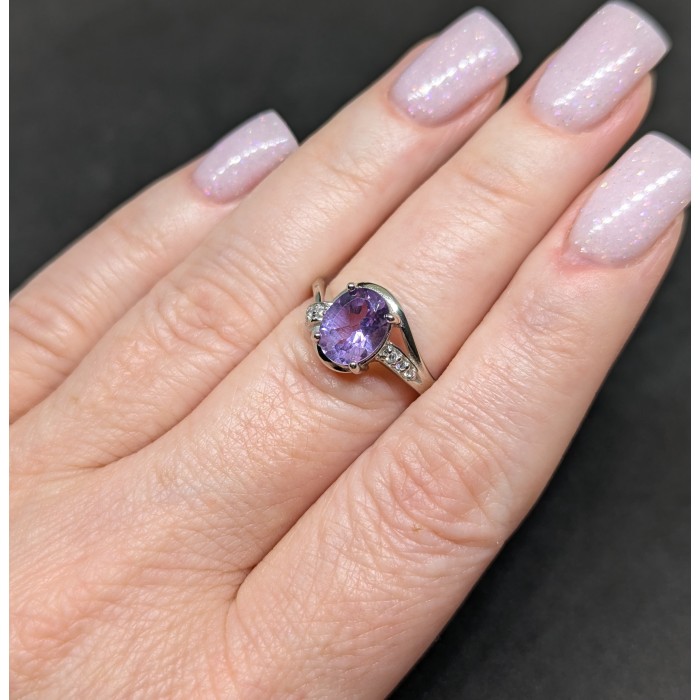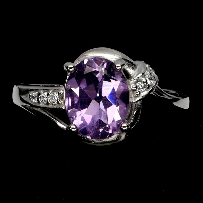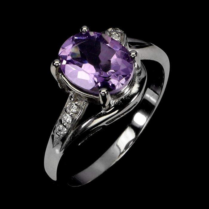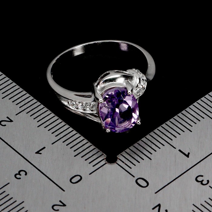 К5612Natural Amethyst Cz 12.0 X 11.0 MM.Розмір 17.35.Вага 2.77 гр.Срібло 925 проби покрите білим золотом.Розмір каміння - 1.0 TO 9.0 X 7.0 MM.Чистота - If To Vvs.Обробка - Unheated.Походження - Uruguay...