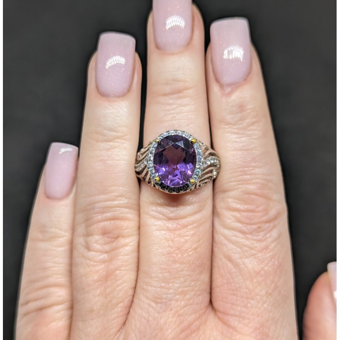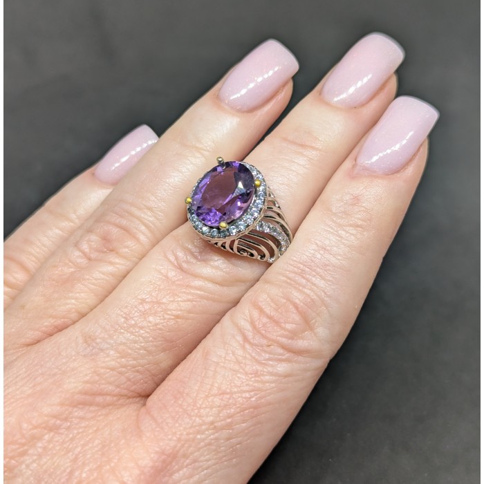К6625Natural Amethyst Cz 20.0 X 11.0 MM.Розмір 18.Вага 3.97 гр.Срібло 925 проби покрите білим золотом.Розмір каміння - 8.0 MM., CZ 1.0 MM.Чистота - If To Vvs.Обробка - Unheated.Походження - Uruguay...