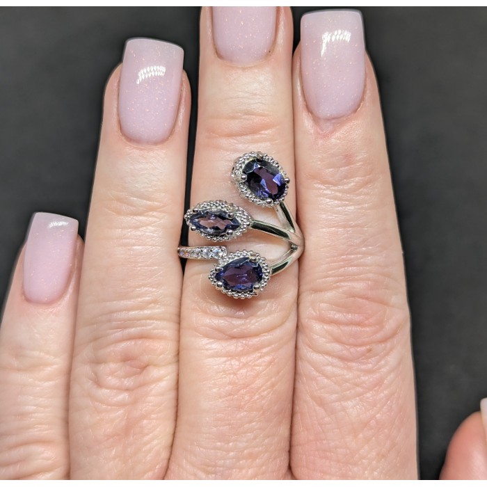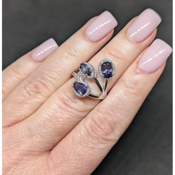 NATURAL AAA PURPLE BLUE IOLITE & WHITE CZ 22 x 20 mm.