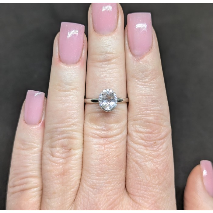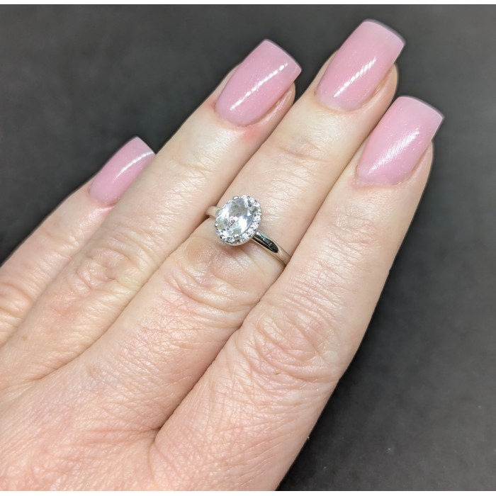 К6479Natural Morganite Cz 16.0 X 7.0 MM.Розмір 18.2.Вага 2.32 гр.Срібло 925 проби покрите білим золотом.Розмір каміння - 7.0 X 5.0 MM., CZ 1.5 TO 1.5 MM.Чистота - If To Vvs.Обробка - Unheated.Походження - Madagascar...