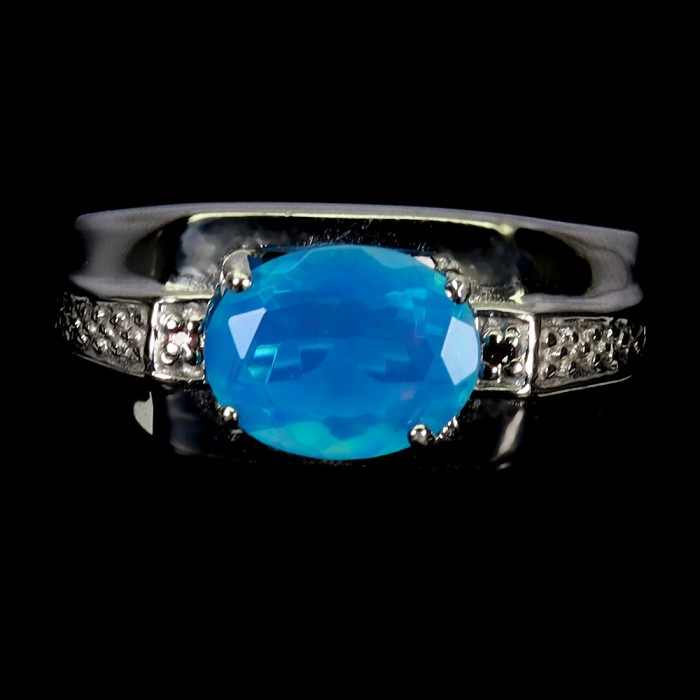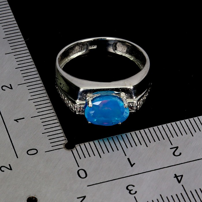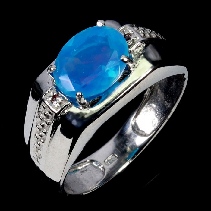 К5417Natural Blue Opal, Ruby, Tourmaline 22.0 X 14.0 MM.Розмір 17.75.Вага 5.44 гр.Срібло 925 проби покрите білим золотом.Розмір каміння - 1.0 TO 8.0 X 6.0 MM.Чистота - If.Обробка - Clarity Enhanced.Походження - Ethiopia...