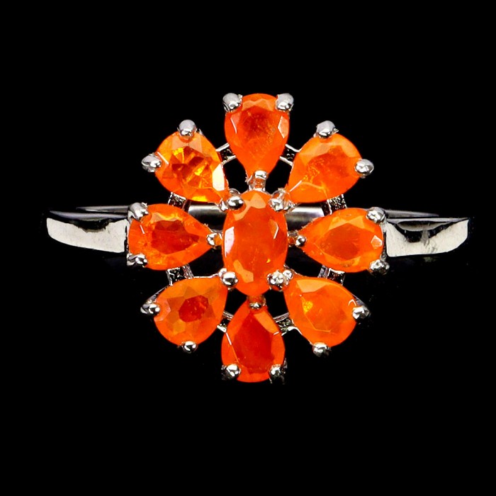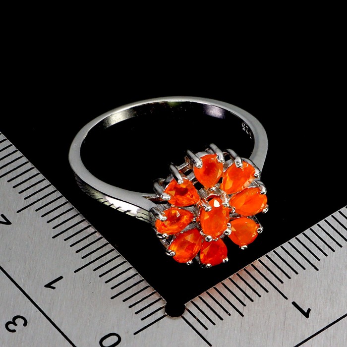 К5785Natural Rhodolite Garnet, Fire Opal 20.0 X 19.0 MM.Розмір 17.35.Вага 4.03 гр.Срібло 925 проби покрите білим золотом.Розмір каміння - 5.0 X 3.0 TO 7.0 X 3.5 MM.Чистота - If To Vvs.Обробка - Unheated.Походження - Africa...