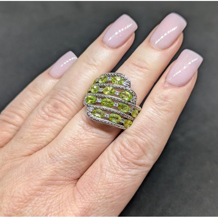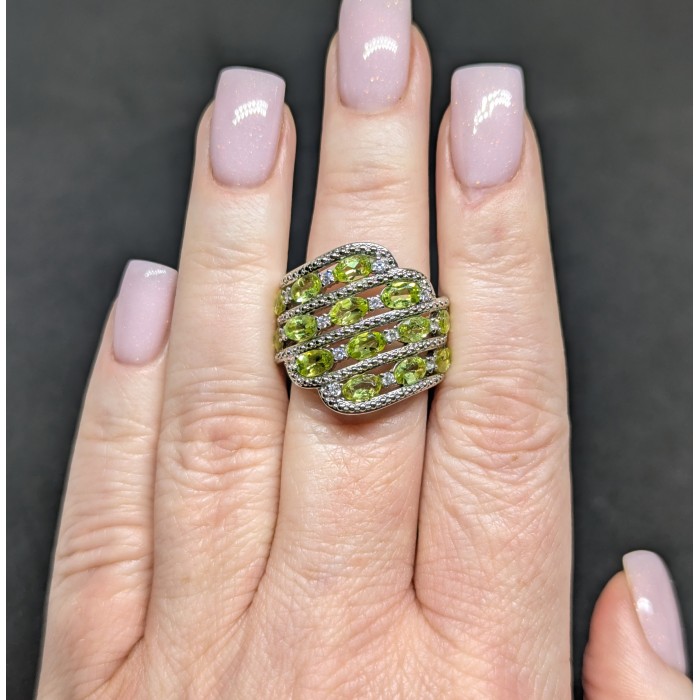 К6744Natural Green Emerald Cubic Zirconia 15 x 19.5 mm.Розмір 17.35.Вага 3,37 гр.Срібло 925 проби покрите білим золотом.Розмір каміння - 3 x 5 - 2.0 mm.Чистота - Transparent.Обробка - Unheated.Походження - Brazil...