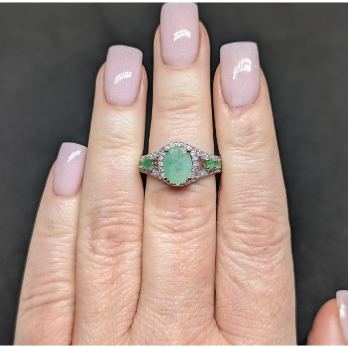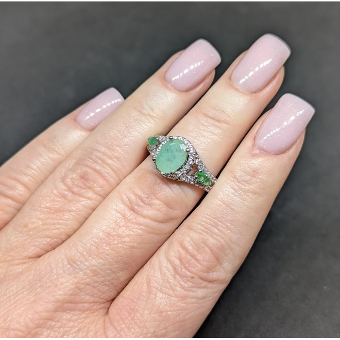 К6601Natural Emerald, Tanzanite 16.0 X 10.0 MM.Розмір 17.35.Вага 2.56 гр.Срібло 925 проби покрите білим золотом.Розмір каміння - 2.0 TO 9.0 X 7.0 MM. Чистота - Transparent.Обробка - Unheated.Походження - Brazil...