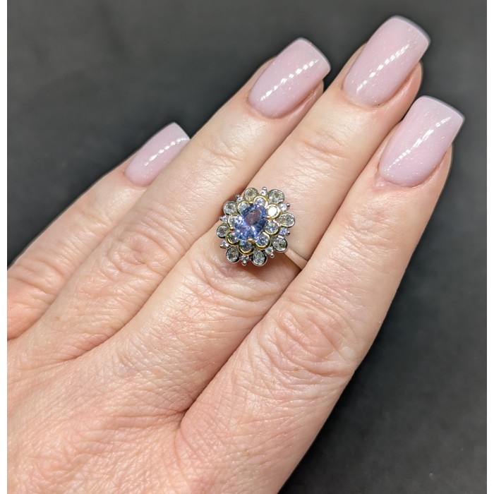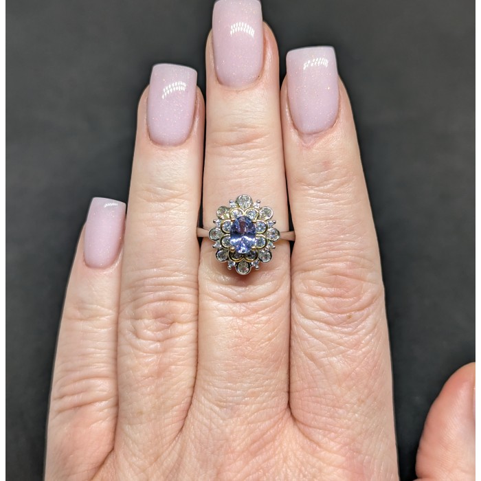 К6584Natural Chrome Diopside, Tanzanite 16.0 X 14.0 MM.Розмір 17.35.Вага 3.2 гр.Срібло 925 проби покрите білим золотом.Розмір каміння - 4.0 TO 6.0 X 4.0 MM. Чистота - If To Vvs.Обробка - Unheated.Походження - Africa...