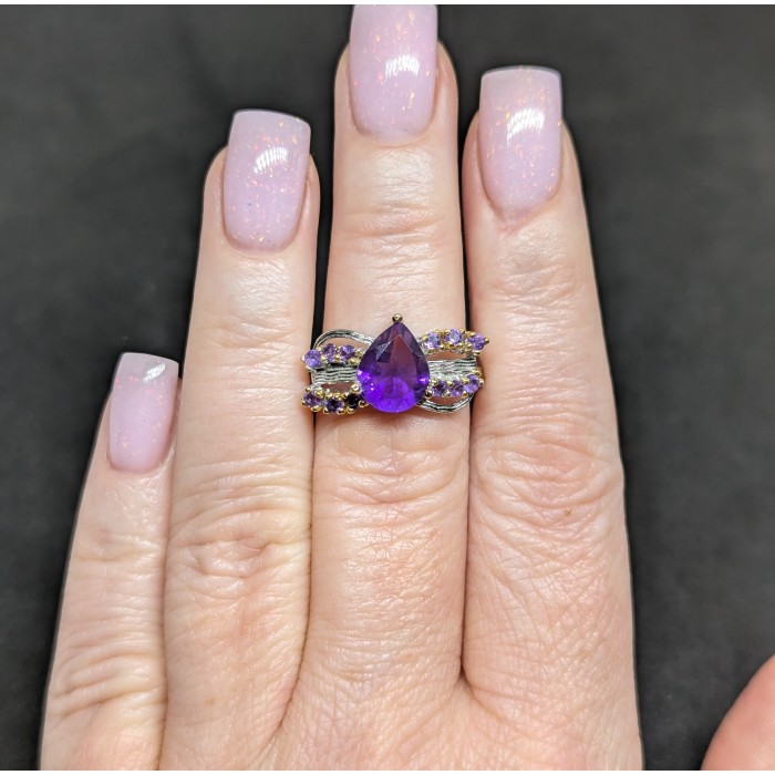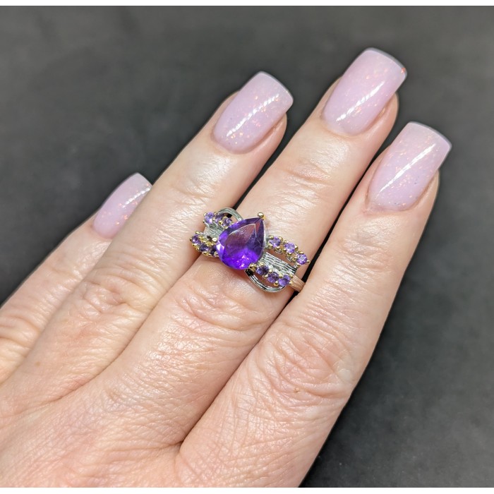К5795Natural Amethyst, Rhodolite Garnet 21.0 X 10.0 MM.Розмір 18.2.Вага 4.11 гр.Срібло 925 проби покрите білим золотом.Розмір каміння - 1.0 TO 6.0 X 4.0 MM.Чистота - If To Vvs.Обробка - Unheated.Походження - Uruguay...
