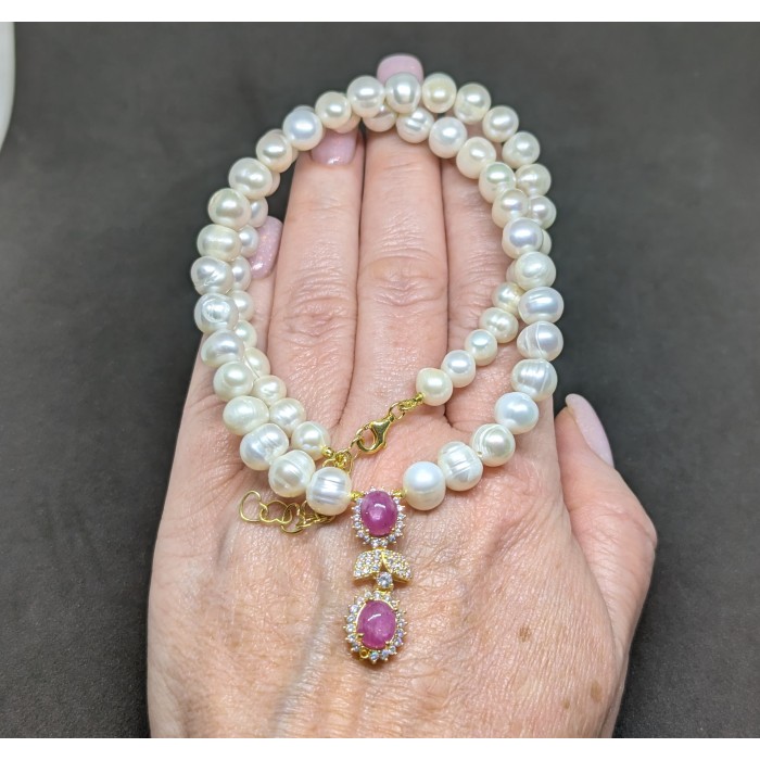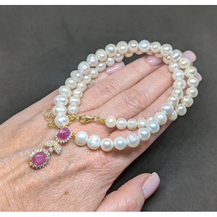 П3911Natural White Pearl Cz 416.5 Х 50.0 X 18.0 MM.Вага 8.19 гр.Срібло 925 проби покрите білим золотом.Розмір каміння - 6.0 X 5.0 TO 7.0 MM., CZ 2.5 MM.Чистота - OPAQUE.Обробка - CULTURED FRESHWATER.Походження - CHINA...