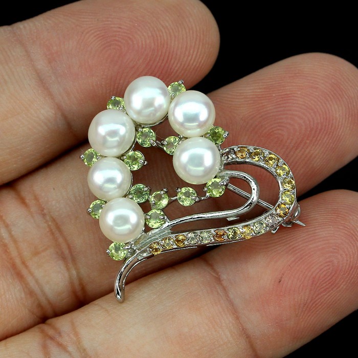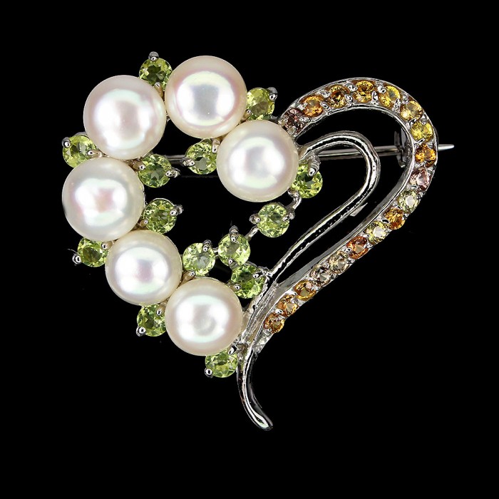 Natural Peridot, Pearl, Sapphire 30.0 X 28.0 MM.