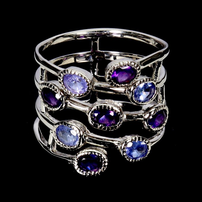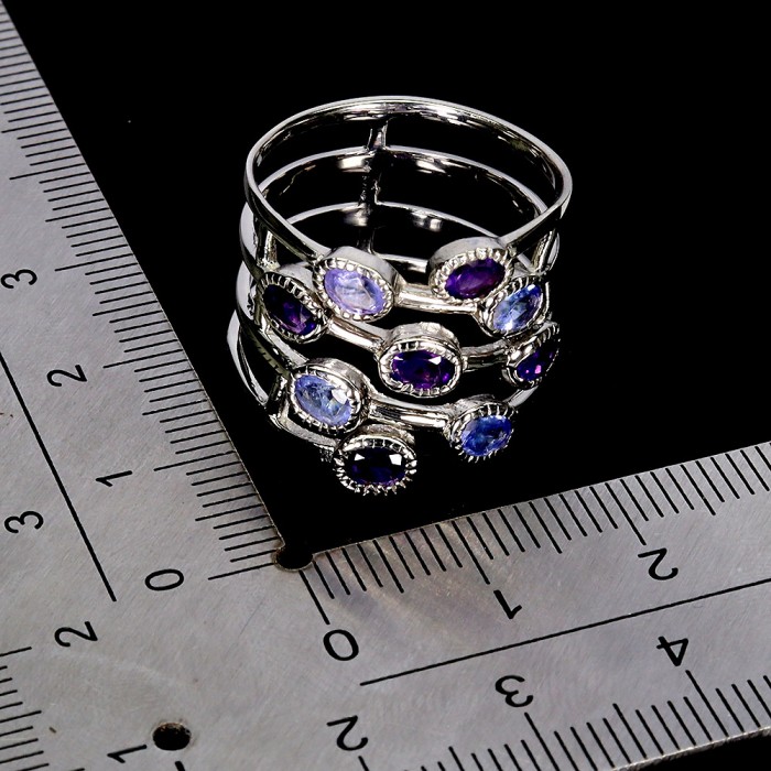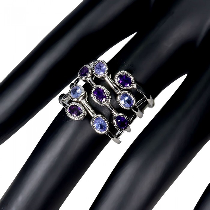 К5898Natural Amethyst, Chrome Diopside, Rhodolite Garnet, Tanzanite 21.0 X 21.0 MM.Розмір 17.7.Вага 3.9 гр.Срібло 925 проби покрите білим золотом.Розмір каміння - 3.0 TO 5.0 X2 .5 MM. Чистота - If To Vvs.Обробка - Unheated.Походження - Brazil...