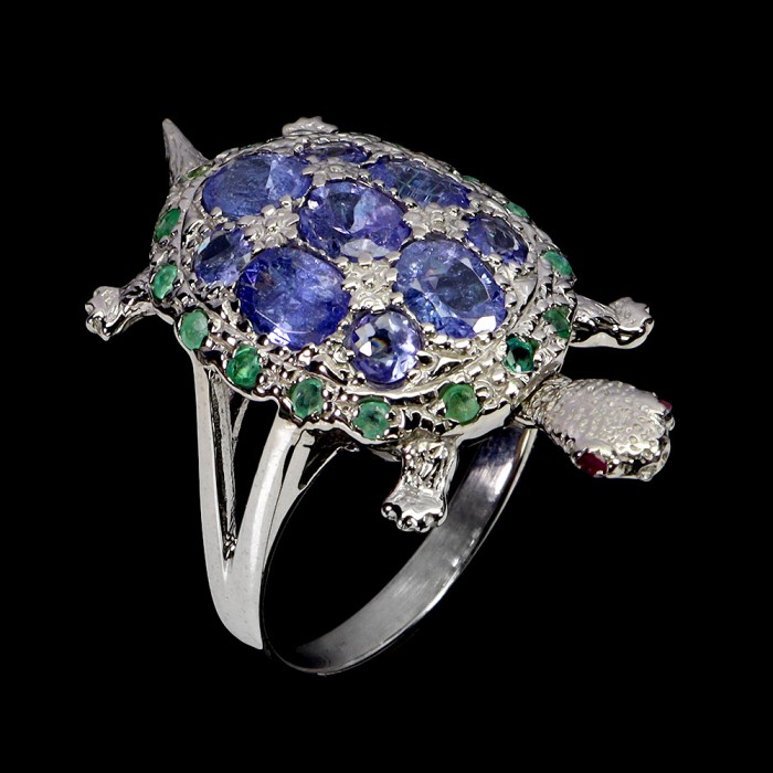 К5898Natural Amethyst, Chrome Diopside, Rhodolite Garnet, Tanzanite 21.0 X 21.0 MM.Розмір 17.7.Вага 3.9 гр.Срібло 925 проби покрите білим золотом.Розмір каміння - 3.0 TO 5.0 X2 .5 MM. Чистота - If To Vvs.Обробка - Unheated.Походження - Brazil...