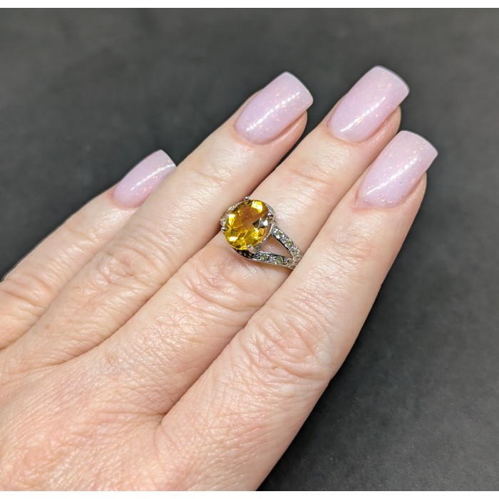 К6030Natural Citrine, Peridot 19.0 X 10.0 MM.Розмір 17.35.Вага 2.74 гр.Срібло 925 проби покрите білим золотом.Розмір каміння - 1.0 TO 9.0 X 7.0 MM. Чистота - If To Vvs.Обробка - Unheated.Походження - Brazil...