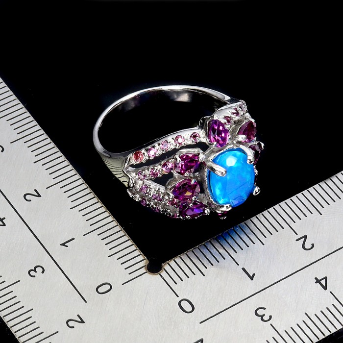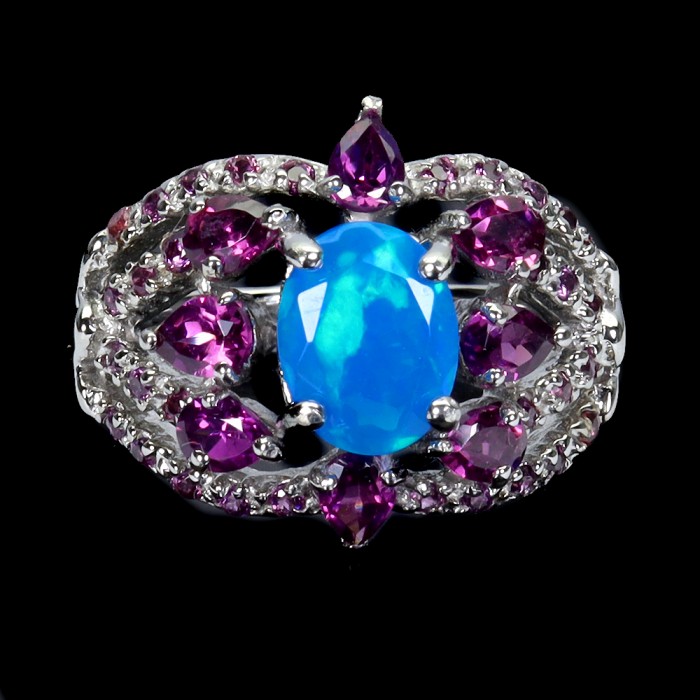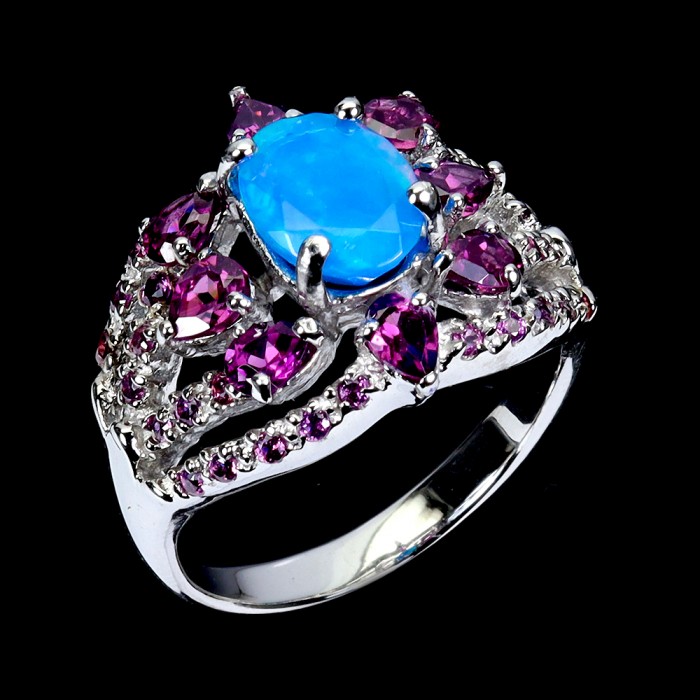 Natural Blue Opal, Rhodolite Garnet 23.0 X 18.0 MM.