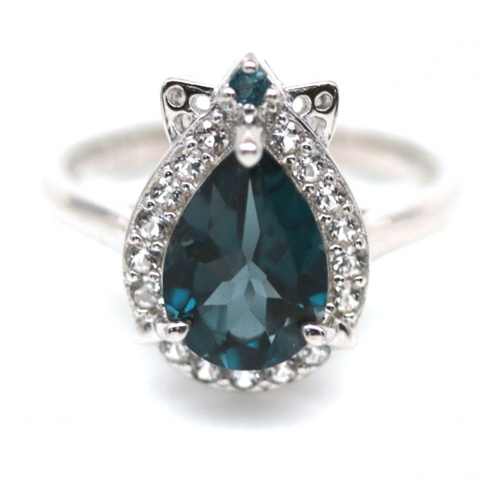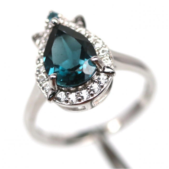С6150Natural London Blue Topaz Cz 27.0 X 7.0 MM.Вага 3.94 гр.Срібло 925 проби покрите білим золотом.Розмір каміння - 7.0 X 5.0 MM., CZ 1.0 MM.Чистота - If To Vvs.Обробка - Irradiated.Походження - Africa...