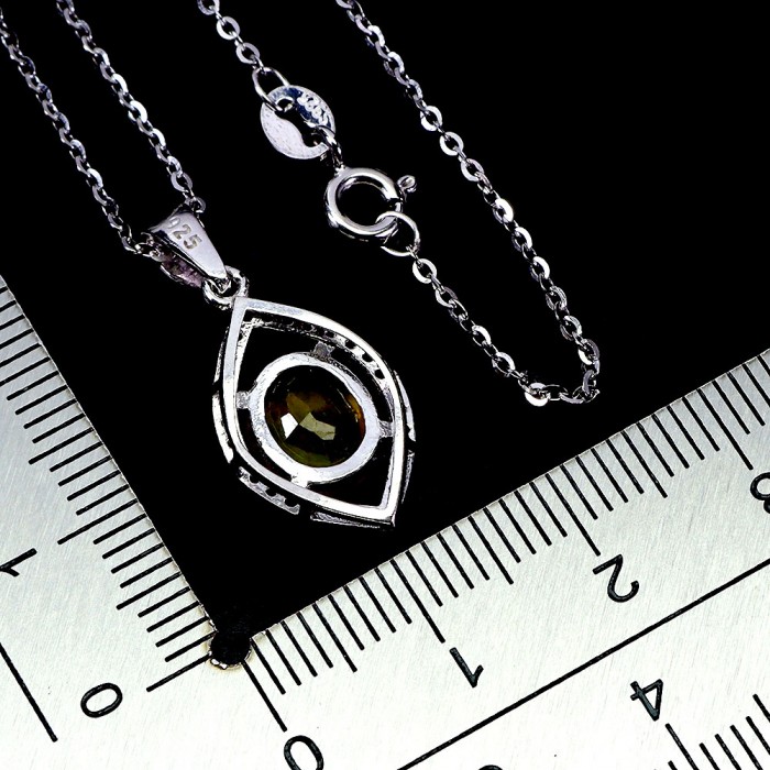 К5911Natural Chrome Diopside 26.0 X 19.0 MM.Розмір 17.7.Вага 4.88 гр.Срібло 925 проби покрите білим золотом.Розмір каміння - 4.0 X 3.0 MM.Чистота - If To Vvs.Обробка - Unheated.Походження - Africa...