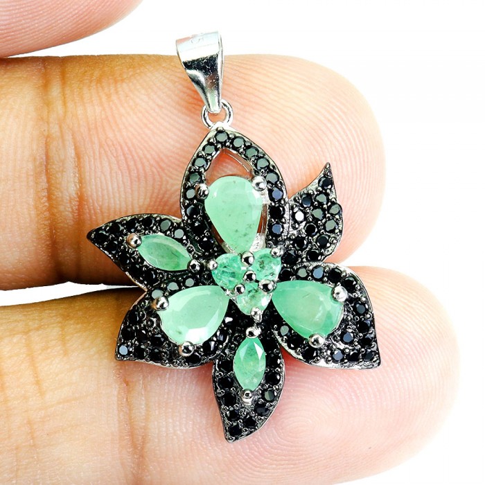 Natural Emerald, Black Spinel 30.0 X 19.0 MM.