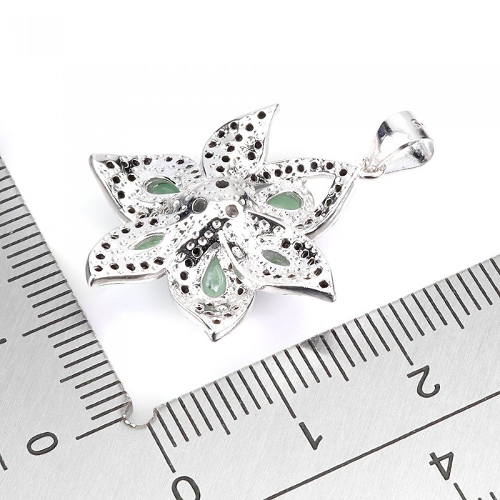 С6169Natural Rhodolite Garnet, Emerald, Tanzanite 34.0 X 18.0 MM.Вага 4.34 гр.Срібло 925 проби покрите білим золотом.Розмір каміння - 1.5 TO 7.0 X 5.0 MM. Чистота - If To Vvs.Обробка - Unheated.Походження - Africa...