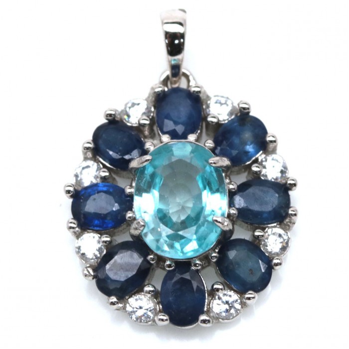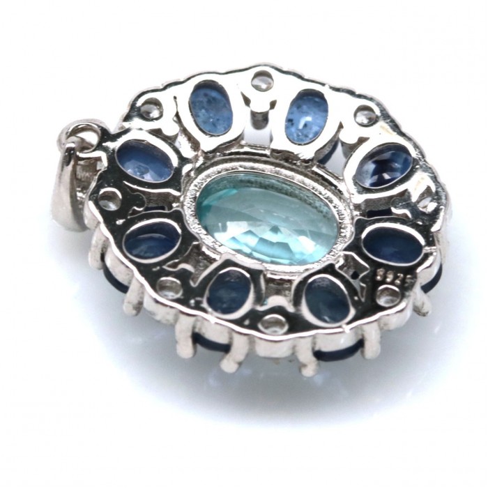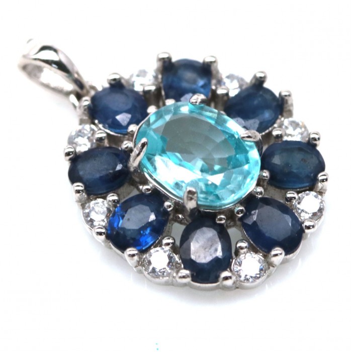 П6365Natural Paraiba Blue Topaz 24.0 X 17.0 MM.Вага 2.9 гр.Срібло 925 проби покрите білим золотом.Розмір каміння - 2.5 TO 6.0 X 3.0 MM.Чистота - If To Vvs.Обробка - Surface Coated.Походження - Brazil...