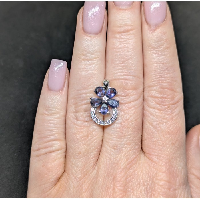 П3297Natural Iolite 6.0 Х 35.0 ММ.Вага 1.6 гр.Срібло 925 проби покрите чорним родієм.Розмір каміння - 6Х4 ММ.Чистота - IF TO VVS.Обробка - UNHEATED.Походження - AFRICA...