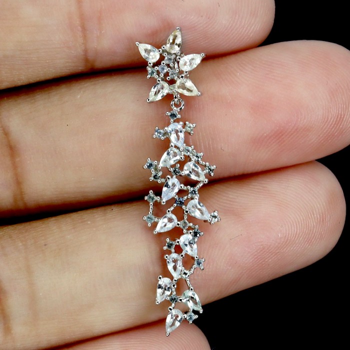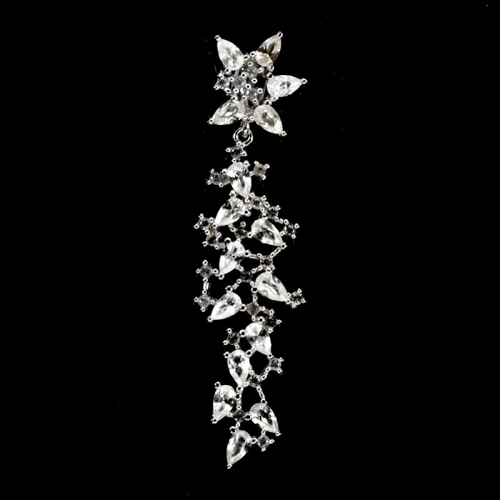П6347Natural White Topaz & White Zircon 13 x 20 mm.Вага 1,5 гр.Срібло 925 проби покрите білим золотом.Розмір каміння - 6 x 8 - 1.2 mm.Чистота - If.Обробка - Irradiated.Походження - Africa...