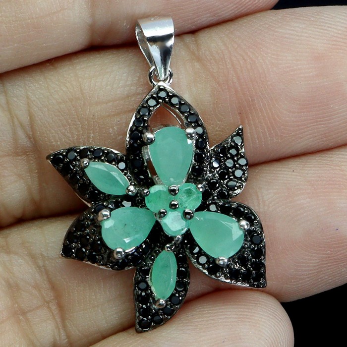Natural Emerald, Black Spinel 30.0 X 19.0 MM.