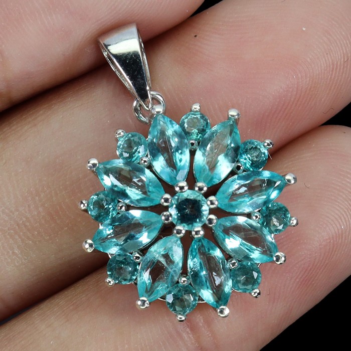 П6345Natural Sea Foam Blue - White Zircon & Blue Sapphire 15.6 x 22 mm.Вага 2,74 гр.Срібло 925 проби покрите білим золотом.Розмір каміння - 6 x 8 - 2.0 mm.Чистота - TRANSPARENT.Обробка - UNHEATED.Походження - ETHIOPIA...