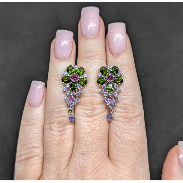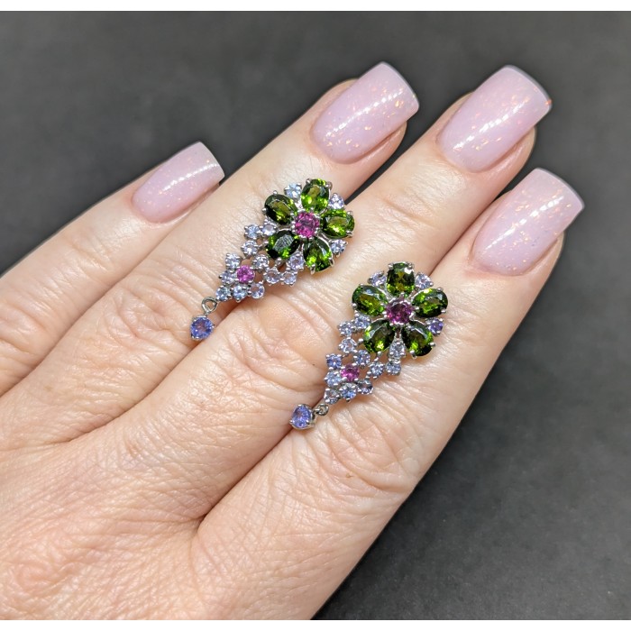С5243Natural Tourmaline, Rhodolite Garnet, Sapphire 18.0 X 15.0 MM.Вага 4.81 гр.Срібло 925 проби покрите білим золотом.Розмір каміння - 1.0 TO 4.0 X 2.0 MM.Чистота - If To Vvs.Обробка - Unheated.Походження - Brazil...