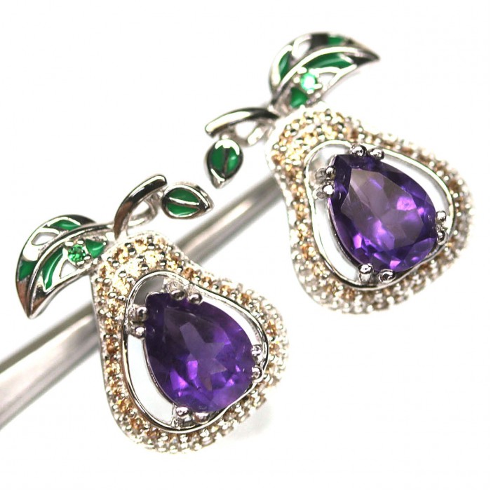 Natural Purple Amethyst, Sapphire & Tsavorite 12.1 x 16.8 mm.