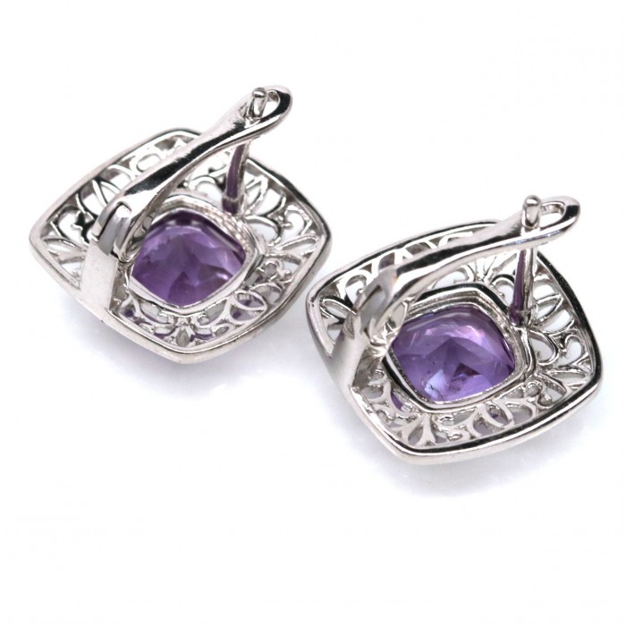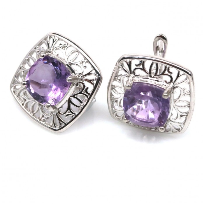 С6343Natural Purple Amethyst & White Zircon 13.4 x 25.0 mm.Вага 6.34 гр.Срібло 925 проби покрите білим золотом.Розмір каміння - 7.0 x 9.0 - 1.2 mm.Чистота - If To Vvs.Обробка - Unheated.Походження - Uruguay...