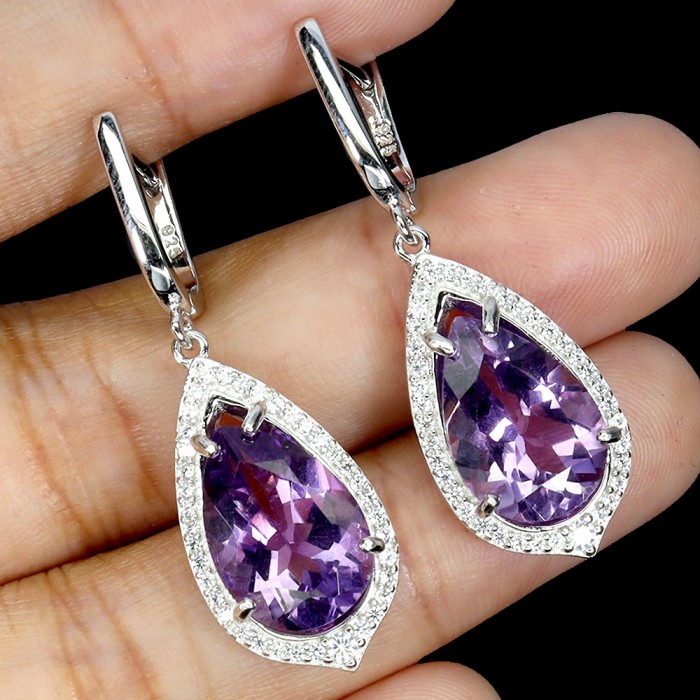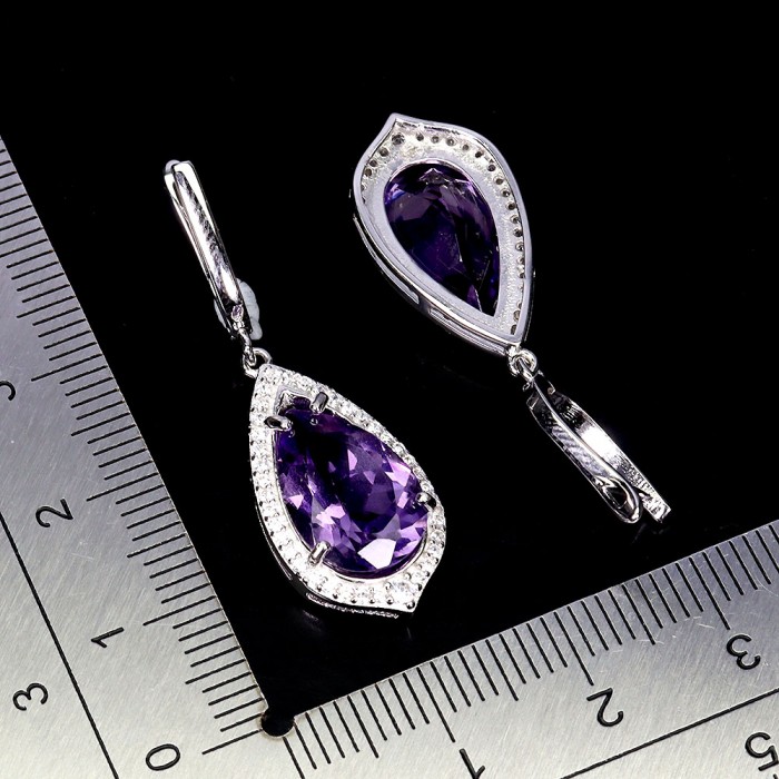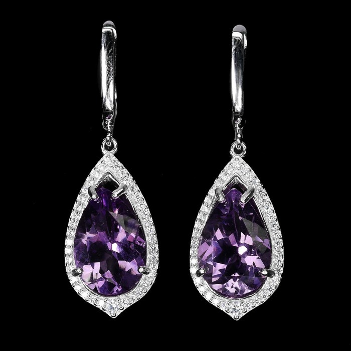 С6343Natural Purple Amethyst & White Zircon 13.4 x 25.0 mm.Вага 6.34 гр.Срібло 925 проби покрите білим золотом.Розмір каміння - 7.0 x 9.0 - 1.2 mm.Чистота - If To Vvs.Обробка - Unheated.Походження - Uruguay...