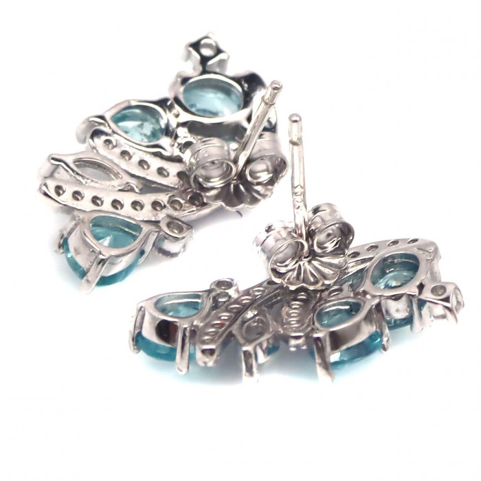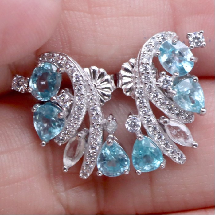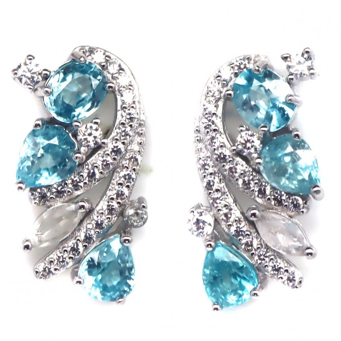 С6344Natural Sky Blue Topaz & White Zircon 11.0 x 11.0 mm.Вага 3,9 гр.Срібло 925 проби покрите білим золотом.Розмір каміння - 8.1 - 1.1 mm.Чистота - If To Vvs.Обробка - Irradiated.Походження - Africa...