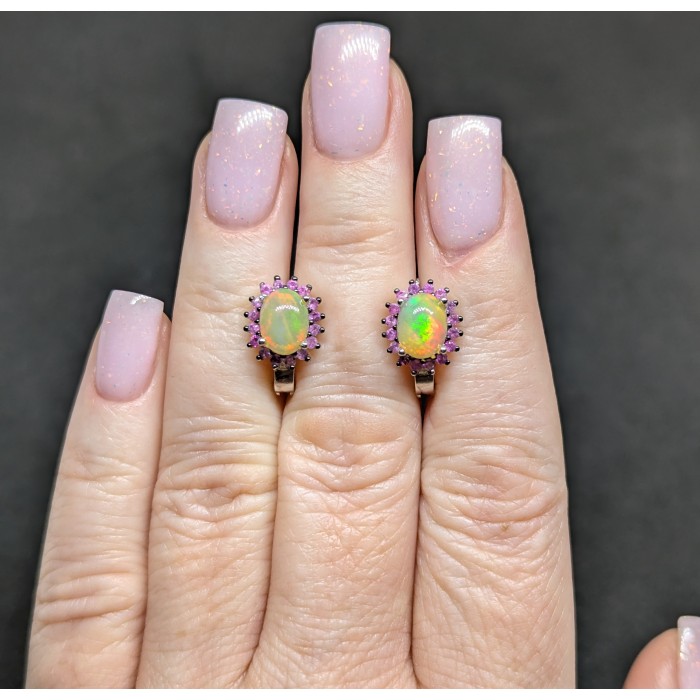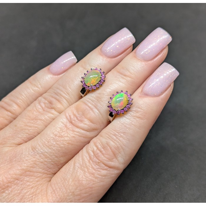 С6193Natural Fire Opal, Sapphire 12.0 X 10.0 MM.Вага 4.1 гр.Срібло 925 проби покрите білим золотом.Розмір каміння - 1.5 TO 8.0 X 6.0 MM.Чистота - If.Обробка - Unheated.Походження - Ethiopia...