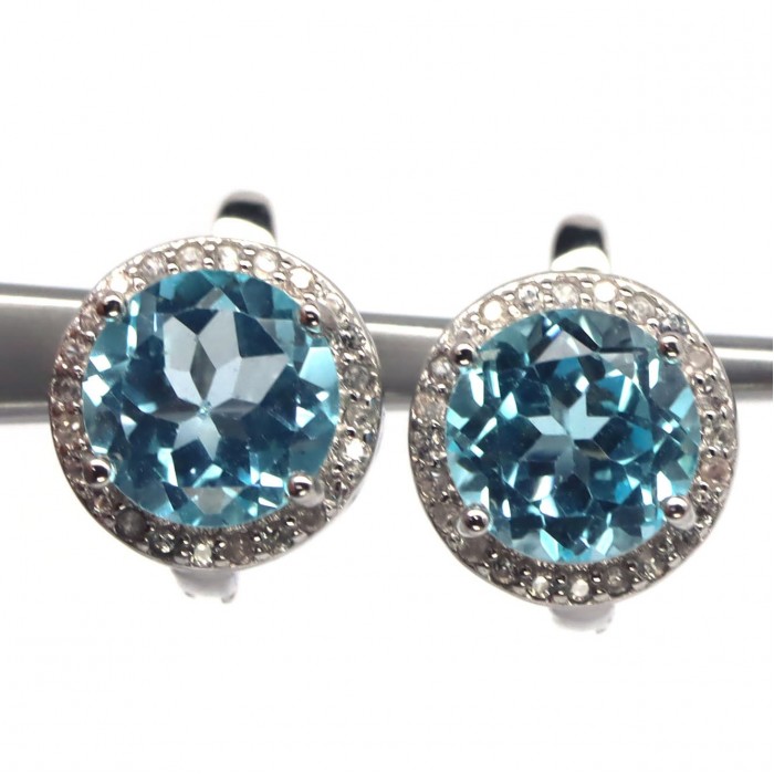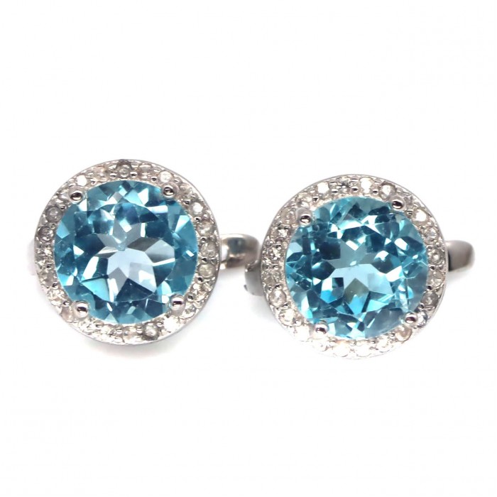 С6342Natural Sea Foam Blue Zircon, Topaz & Cubic Zirconia 9.5 x 17.5 mm.Вага 3,43 гр.Срібло 925 проби покрите білим золотом.Розмір каміння - 4.0 x 5.0 - 1.2 mm.Чистота - TRANSPARENT.Обробка - UNHEATED.Походження - ETHIOPIA...