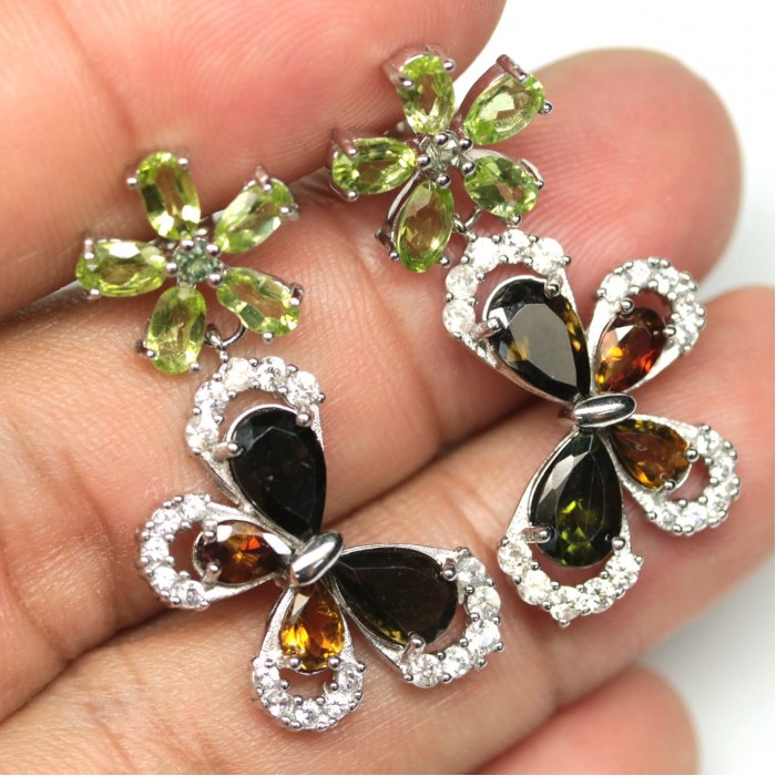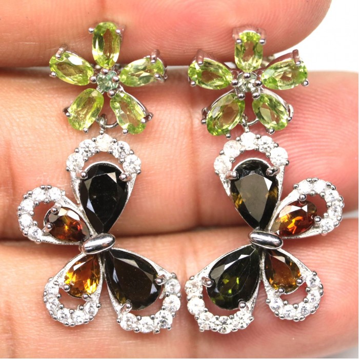 Сережки. Натуральний турмалін і перидот. Срібло 925. С6340