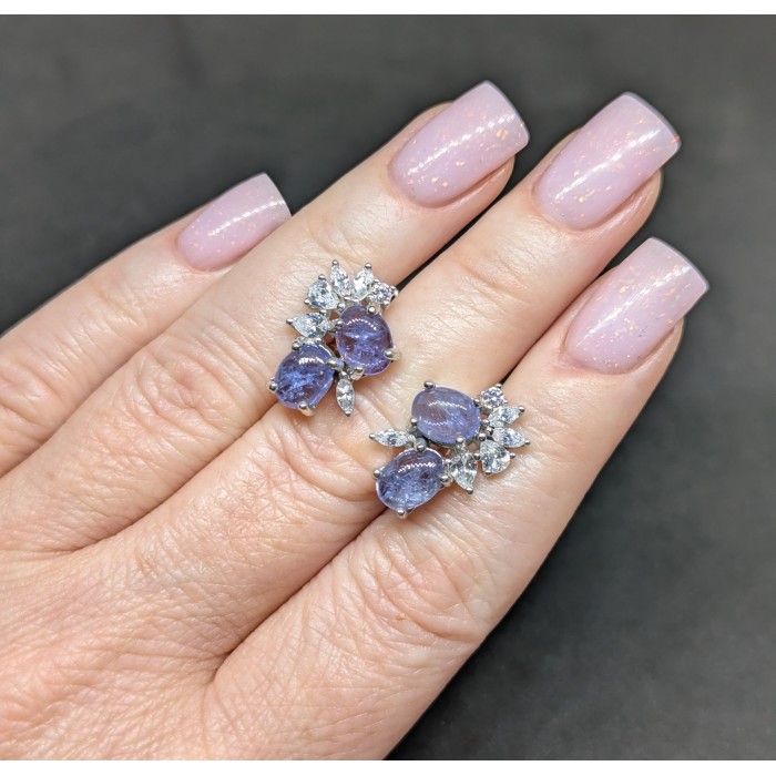 С5718Natural Blue Tanzanite & Cubic Zirconia 13.2 x 12.0 mm.Вага 6,92 гр.Срібло 925 проби покрите білим золотом.Розмір каміння - 6.0 x 8.0 - 2.5 mm.Чистота - If To Vvs.Обробка - Unheated.Походження - Tanzania - Africa...