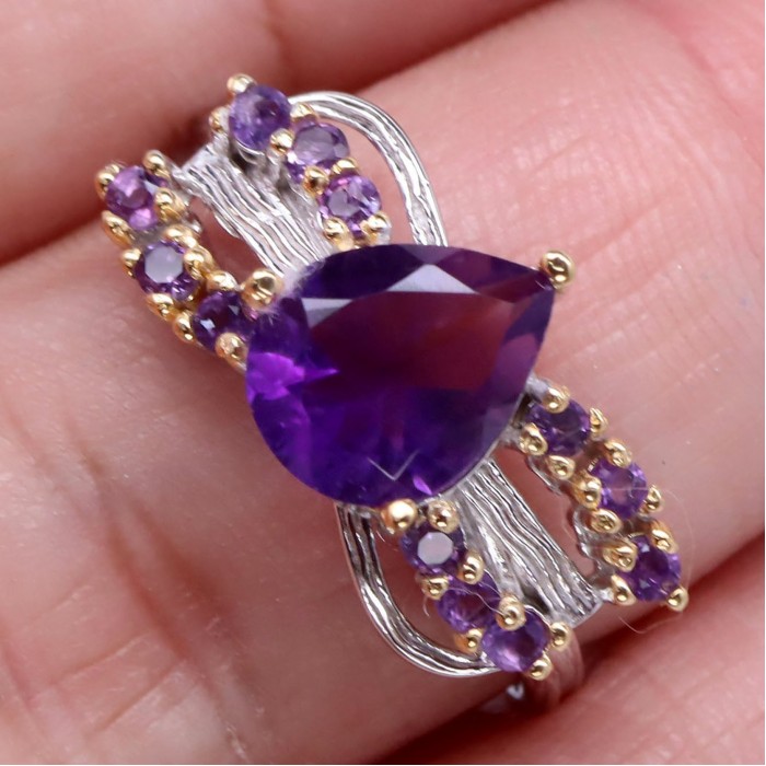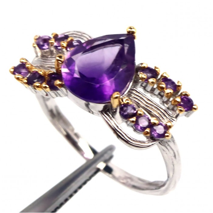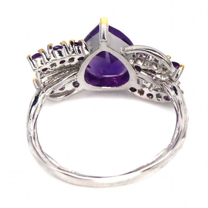 П6145Natural Purple Amethyst 9.7 x 23.0 mm.Вага 2,45 гр.Срібло 925 проби покрите білим і жовтим золотом.Розмір каміння - 8.0 x 10.0 - 2.0 mm.Чистота - If To Vvs.Обробка - Unheated.Походження - Brazil...