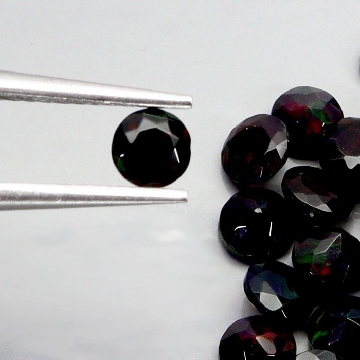 Round Natural AAA Floral Flash Play Of Color Black Opal